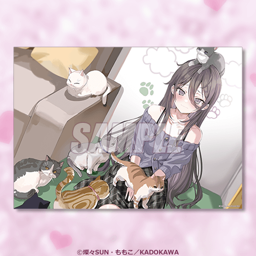 모모코 원작자의 일러스트를 사용한 A3 사이즈 클리어 포스터입니다. 아랴, 유키, 마샤, 아야노 일러스트가 준비되어 있습니다.