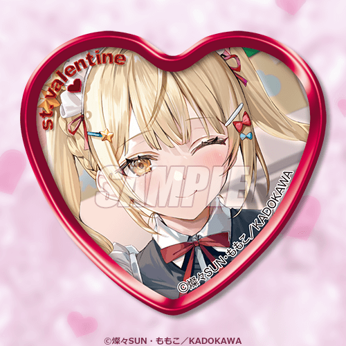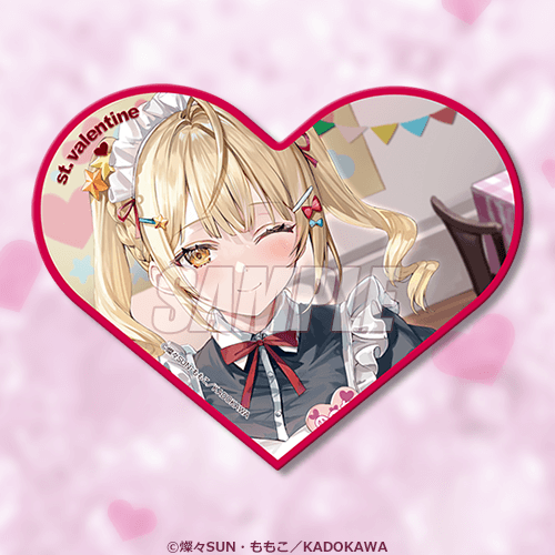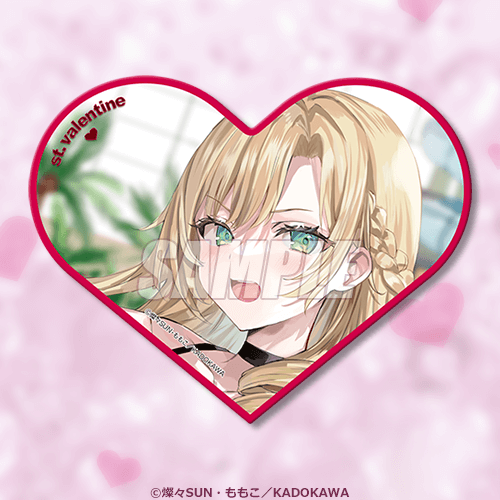 모모코 원작자의 일러스트를 사용한 하트형 캔뱃지입니다. 아랴를 비롯한 히로인들의 다양한 표정을 즐길 수 있습니다.